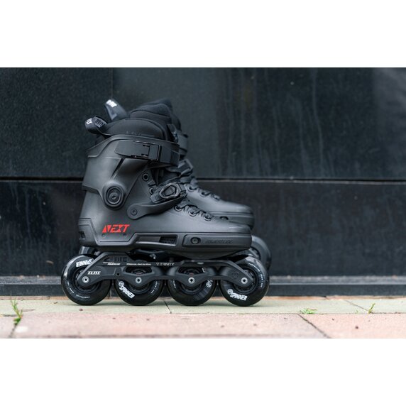 Powerslide NEXT sú prvé korčule svojho druhu na svete, ktoré prichádzajú s prvým TRINITY trojbodovým rámom na inline korčule s tvrdou škrupinou. Korčule NEXT ponúkajú množstvo možností vlastného nastavenia, vďaka čomu si môžeš jazdu prispôsobiť sebe. Prispôsob si oporu nohy, tým že zmeníš výšku cuffu alebo vyrovnaj nezrovnalosti prispôsobením cuffu len na jednej strane (zošikmením). Môžeš dokonca zostrihnúť tvoj cuff alebo skrátiť jeho krídla.